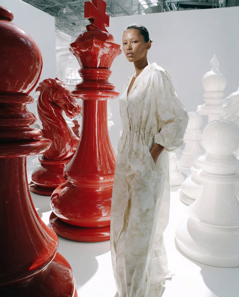 Fashion-Visuals in realistischen oder außergewöhnlichen Settings. Losgelöst von realen Locations.