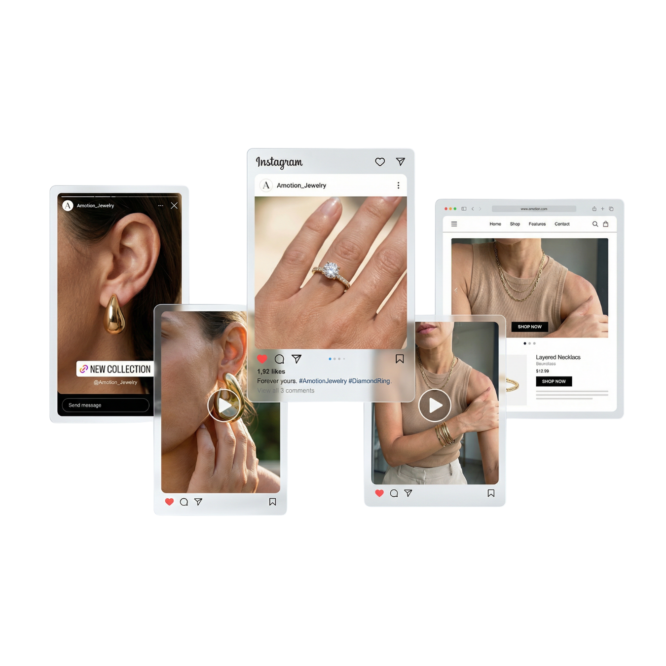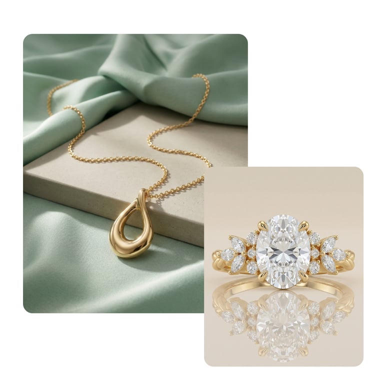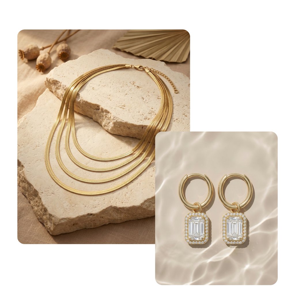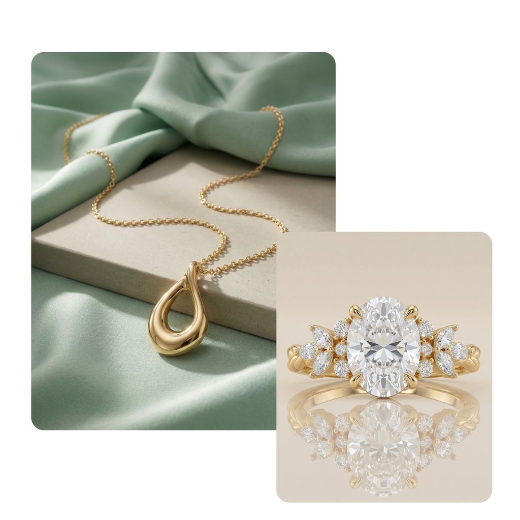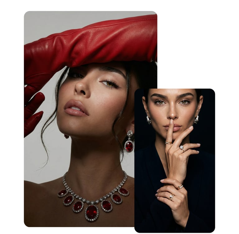 Stilvolle Umgebungen und passende Szenen sorgen für eine natürliche Einbindung des Produkts in den Alltag. Egal ob Stadt oder Natur – Schmuck kann in jeder Umgebung inszeniert werden, unabhängig von Ort und Jahreszeit.