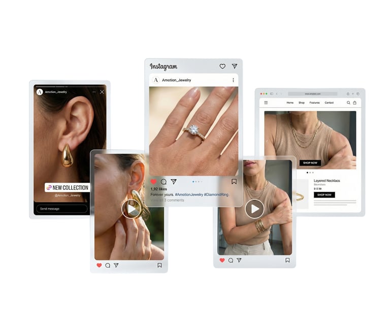 Unsere Produktfotos und Werbevideos lassen sich direkt in Social Media, Werbeanzeigen und Online-Shops einsetzen. Ein Look, der überall funktioniert und deine Marke konsistent präsentiert.